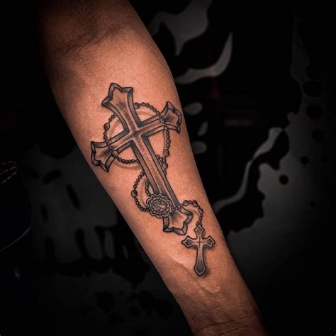 A black and white tattoo, this tattoo features a dove, which is just about to perch on top of a metallic cross. He has a tattoo of a cross on his right forearm and several other tattoos inked on his left arm. 1.2 left arm tribal tattoos. When it comes to cross tattoos for men, the designs are more varied..