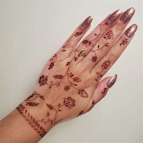 Henna (or mehndi, in hindi) is a body art practice of applying a paste made of dried henna leaves to the skin. Sparkly glitter has also been added. Below, browse our favorite photos of intricate patterns for maximum body art inspiration. That said, this piece manages to combine the lotus flower with a very beautiful arabian aesthetic. Popular arm henna.
