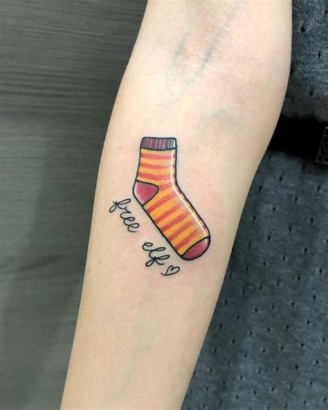 Another great dobby “free elf” tattoo. Yes, you can have a tattoo and still be ladylike! Well, the design is printed in black on the front of one sock. Get a free and professionally designed mockup of your sock design. Sock band band labels wrap around the middle of each folded pair of socks and are printed on 16pt 2x9.